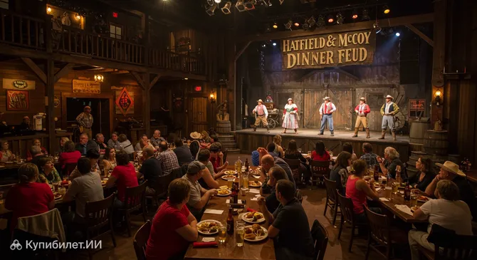 Шоу-ужин «Вражда Хатфилдов и МакКоев» — это одно из самых популярных и весёлых развлечений в городе Севьервилл, расположенном в живописном штате Теннесси, США. Это не просто ужин, а целое театрализованное представление, которое погружает гостей в атмосферу легендарной семейной вражды между кланами Хэтфилдов и МакКоев, ставшей частью американского фольклора. Шоу сочетает в себе зажигательную музыку, танцы, акробатические трюки и искромётный юмор, что делает его отличным выбором для семейного отдыха.
