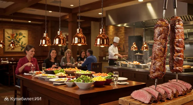 Фого де Шау — это знаменитый бразильский стейк-хаус (чурраскария), расположенный в городе Шамбург, в США. Это место, где можно погрузиться в кулинарные традиции южной Бразилии и попробовать мясо, приготовленное по методу чурраско — на открытом огне. Особенность заведения заключается в том, что повара-гаучо нарезают и подают сочные куски мяса прямо у вашего стола, превращая ужин в настоящее гастрономическое представление.