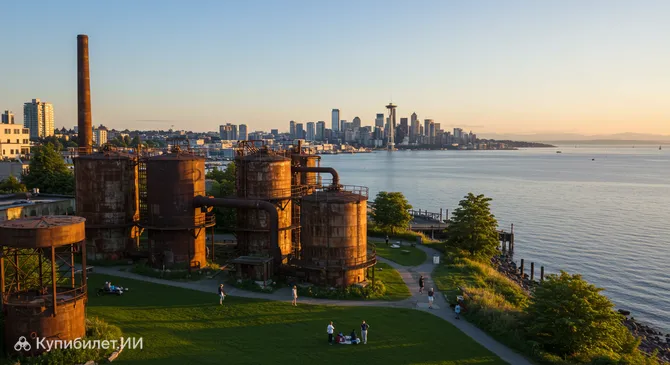 Парк Газовых Заводов (Gas Works Park) – это удивительное и неповторимое общественное пространство, раскинувшееся на северном берегу озера Юнион в городе Сиэтле, США. Этот уникальный парк занимает территорию около 8 гектаров и представляет собой яркий пример того, как бывший промышленный объект может обрести новую жизнь, превратившись в излюбленное место отдыха горожан и туристов.