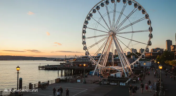 Сиэтлское колесо обозрения (Seattle Great Wheel) – это не просто аттракцион, а одна из визитных карточек города Сиэтла, расположенного в США. Оно гордо возвышается на пирсе 57, в самом сердце набережной, открывая своим посетителям захватывающие виды на залив Эллиотт, величественные горы Олимпик и динамичный городской пейзаж.