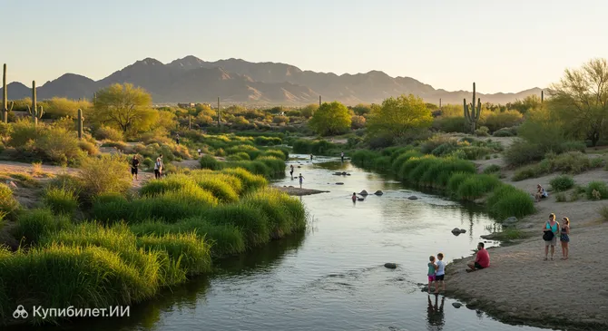Для любителей природы и активного отдыха, исследующих окрестности Скоттсдейла, территории вдоль Рио-Саладо могут предложить живописные маршруты для пеших или велосипедных прогулок, удобные точки для наблюдения за птицами или просто тихие уголки для созерцания природы. Это прекрасная возможность ближе познакомиться с природным разнообразием Аризоны и насладиться спокойствием вдали от оживленных городских районов.