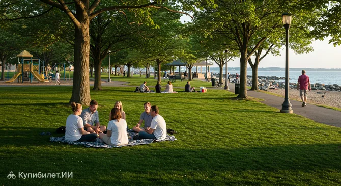 Представьте себе 79 акров живописной территории, раскинувшейся прямо на берегу пролива Лонг-Айленд-Саунд. Именно так встречает гостей Парк Каммингс — одно из самых популярных мест для отдыха в городе Стамфорд, США. Этот просторный прибрежный парк гармонично сочетает в себе ухоженные зеленые лужайки и песчаные пляжи.