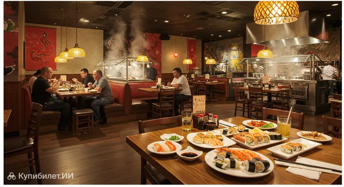 Umi Хотпот, суши и морепродукты — буфет. Иллюстрация.