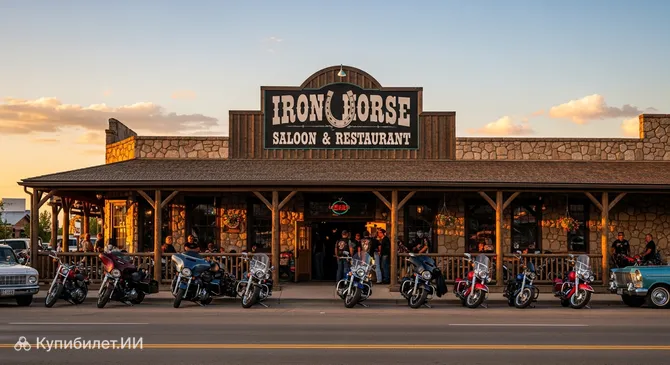 В самом сердце мировой столицы мотоциклетного движения находится Iron Horse Saloon & Restaurant — грандиозный комплекс, ставший легендой среди любителей дорог. Расположенный в городе Стерджис, этот объект в США занимает внушительные 25 000 квадратных футов и предлагает гостям три этажа, пропитанных духом настоящей байкерской культуры.