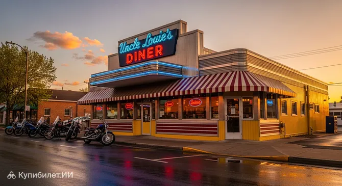 Если вы ищете место, где оживают традиции американского гостеприимства, то Закусочная дяди Луи — именно то, что нужно. Расположенная в самом сердце города Стерджис, США, она представляет собой классический дайнер в стиле 50–70-х годов прошлого века.