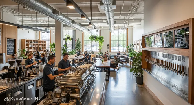 В самом сердце города Су-Фолс, расположенного в США, находится уникальное пространство The Source Coffee Roastery + Taproom. Это не просто кофейня, а современный гастрономический хаб, объединяющий под одной крышей искусство обжарки кофе и культуру крафтового пивоварения. Заведение славится своим независимым духом и стремлением к высочайшему качеству каждой поданной чашки.