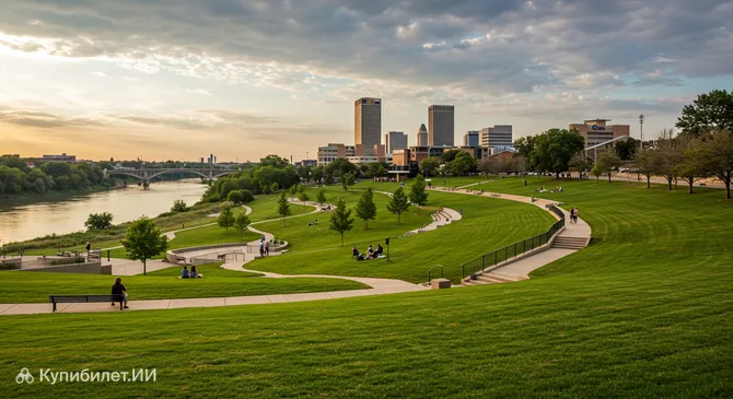 Парк Ривер Уэст Фестиваль — это живописное пространство для отдыха и одна из главных развлекательных площадок города Талса. Расположенный на западном берегу реки Арканзас в США, этот парк славится своими великолепными панорамными видами на городские небоскребы и уютной атмосферой набережной.