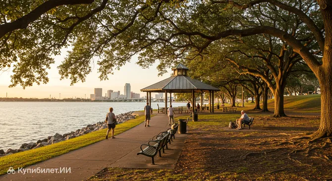 Парк очаровывает посетителей разнообразием своих природных ландшафтов. Здесь вы найдете могучие вековые дубы, создающие тенистые аллеи, живописные прибрежные зоны, идеально подходящие для прогулок, и пологие холмы, добавляющие рельефности местности. Это прекрасное место для того, чтобы насладиться природой и отдохнуть от городской суеты.