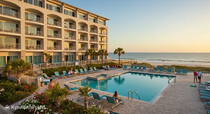 Представьте себе утро, которое начинается с шума прибоя и бескрайнего горизонта — именно такую атмосферу дарит своим гостям Голден Сэндс Оушенфронт Отель. Этот уютный курортный комплекс расположен в живописном уголке города Уилмингтон, штат Делавэр (примечание: географически относится к зоне Каролина-Бич, Северная Каролина), и является излюбленным местом для тех, кто ценит качественный пляжный отдых в США.