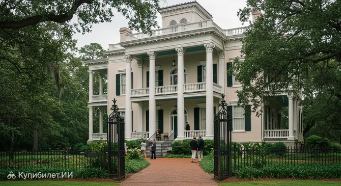 Особняк притягивает взгляды своими массивными колоннами в духе греческого возрождения и утонченными деталями отделки. Построенный между 1859 и 1861 годами, он служит живым свидетельством былого величия и сложности американской истории XIX века. Это не просто дом, а полноценный культурный комплекс, включающий в себя основное здание и бережно сохраненные прилегающие постройки.