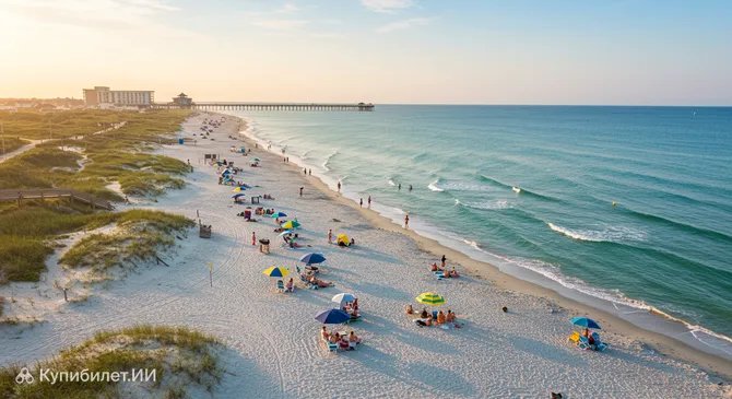 Представьте себе бесконечную полосу белоснежного песка, омываемую лазурными водами Атлантики — именно так встречает гостей Пляж Райтсвилл. Этот живописный уголок, расположенный неподалеку от города Уилмингтон, заслуженно считается одним из самых востребованных курортных мест на восточном побережье США.