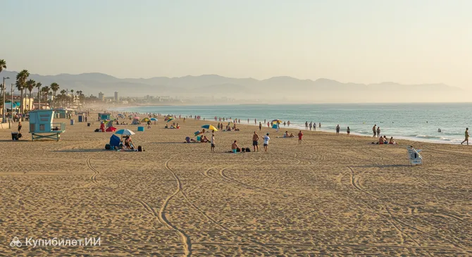 На побережье Мексиканского залива раскинулся Венис-Бич — одно из самых примечательных мест города Венеция в США. Этот общественный пляж славится своим мягким светлым песком и удивительно чистой водой, создавая идеальные условия для тех, кто ищет гармонии с природой и уютного отдыха.