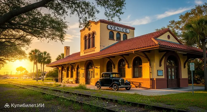 Погрузитесь в атмосферу золотого века путешествий, посетив 1927 Historic Venice Train Depot. Это историческое здание, расположенное в живописном городе Венеция, США, является не просто бывшим транспортным узлом, а настоящим архитектурным сокровищем штата Флорида.