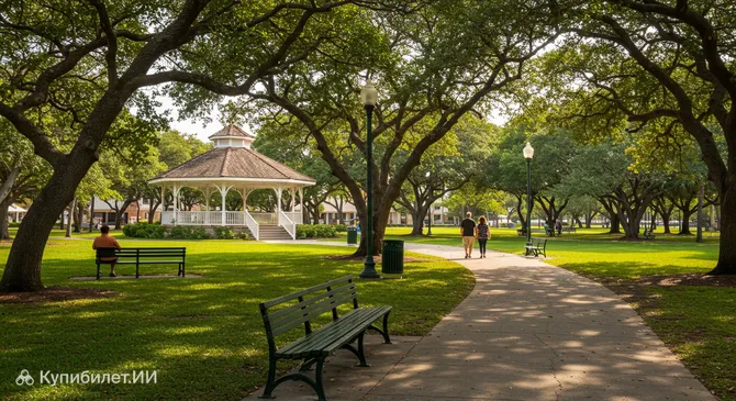 Территория парка очаровывает своей ландшафтной архитектурой: здесь можно встретить уютные холмы, ухоженные сады и величественные живые дубы, создающие приятную тень даже в самый жаркий день. Высокий рейтинг места (4.4 балла) подтверждает его популярность среди путешественников, ценящих комфорт и уютную атмосферу центральных городских парков.