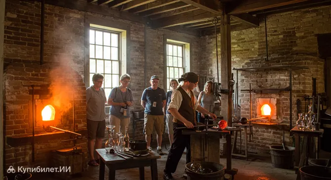Главной привлекательной чертой посещения мастерской является возможность понаблюдать за работой искусных стеклодувов. Прямо на ваших глазах они создают разнообразные стеклянные изделия, используя при этом традиционные методы и инструменты, которые мало изменились со времен первых колонистов. Вы сможете увидеть, как из бесформенной раскаленной массы рождаются изящные вазы, бокалы и другие предметы, и узнать много нового о ремесле, которое сыграло важную роль в становлении экономики первых американских колоний. Это не только познавательный, но и по-настоящему завораживающий опыт для посетителей всех возрастов.