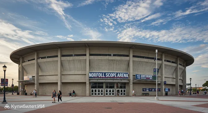 Арена Норфолк Скоуп — это впечатляющий многофункциональный комплекс, расположенный в городе Норфолк, США. Она представляет собой крупную арену, способную вместить до 11 000 зрителей, и является частью более крупного ансамбля, в который также входит театр Крайслер Холл на 2 500 мест. Это делает её важным центром культурной и спортивной жизни региона.