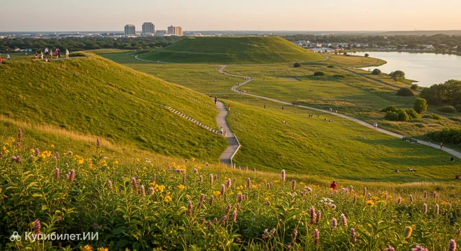 Парк раскинулся на территории в 165 акров (около 67 гектаров) и предлагает разнообразные возможности для активного и спокойного времяпрепровождения. Здесь вы найдете два живописных искусственных холма, два озера, современные игровые площадки для детей, а также популярный скейт-парк и вертикальную рампу для любителей экстремальных видов спорта. Это место, где каждый найдет занятие по душе, будь то пикник на траве, прогулка вдоль озера или катание на скейтборде.