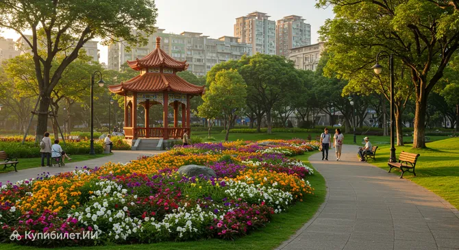 Парк Жэньай в Юнхэ (Ren'ai Park) — это уютный и ухоженный общественный парк, расположенный в оживленном районе города Баньцяо, Тайвань. Он служит популярным местом отдыха как для местных жителей, так и для гостей города, предлагая оазис спокойствия и зелени среди городской суеты. Это идеальное место для тех, кто хочет отдохнуть от шума и познакомиться с повседневной жизнью тайваньцев.