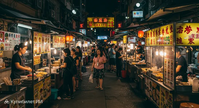 Ночные рынки являются неотъемлемой частью тайваньской культуры. Ночной рынок Гуангхуа не исключение: с заходом солнца его улицы преображаются, заполняясь бесчисленными торговыми палатками и киосками. Здесь можно найти всё – от одежды и сувениров до электроники и бытовых мелочей. Однако главной изюминкой, безусловно, является еда. Ароматы свежеприготовленных блюд смешиваются в воздухе, приглашая попробовать как традиционные тайваньские деликатесы, так и популярные азиатские закуски.
