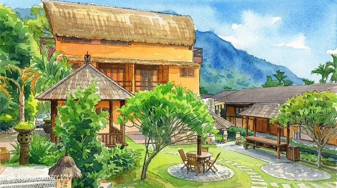Вилла-курорт Бали Бали — это очаровательный загородный отель формата «постель и завтрак», затерянный среди изумрудных холмов поселка Юйчи в уезде Наньтоу. Это место создано для тех, кто мечтает сменить городской шум на пение птиц и величественные горные пейзажи, которыми так славится центральный Тайвань.