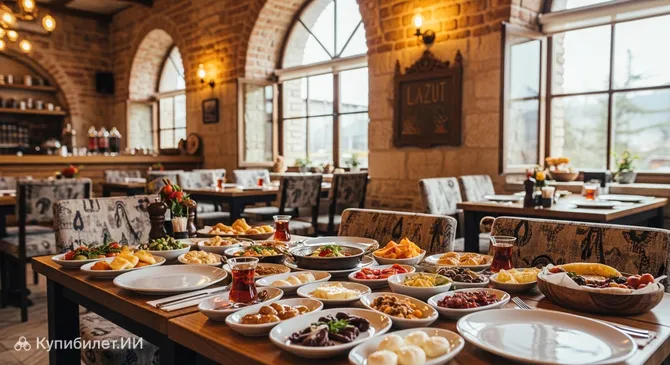 Для тех, кто ценит неспешное утро, Ресторан Lazut и традиционный турецкий завтрак станет настоящим открытием. Здесь подают классический «серпме кахвалты» с акцентом на черноморские специалитеты, такие как кукурузный хлеб и местный сыр. Вид, открывающийся из ресторана, дополняет гастрономические впечатления эстетическим удовольствием.