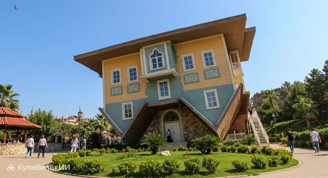 Дом вверх дном в Анталье, Турция, – это поистине уникальный аттракцион, который переворачивает ваше представление о реальности с ног на голову, в буквальном смысле! Представьте себе полностью меблированный дом, где все, от диванов до кухонной утвари, прикреплено к потолку, создавая удивительную иллюзию, будто вы прогуливаетесь по потолку. Это место обязательно вызовет у вас улыбку и подарит массу впечатлений.