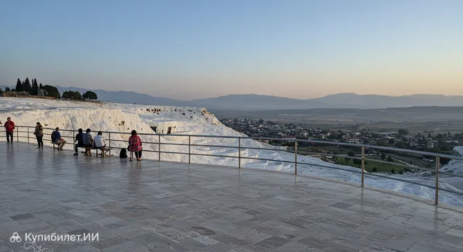 Одной из знаковых точек, привлекающих туристов, является Смотровая терраса Памуккале. Хотя сами травертины находятся немного поодаль, эта терраса, расположенная в черте города или в непосредственной близости, предлагает великолепные панорамные виды на окружающие ландшафты и, возможно, на сами «хлопковые замки» издалека. Это отличное место для фотографий и первого знакомства с уникальной природой региона.