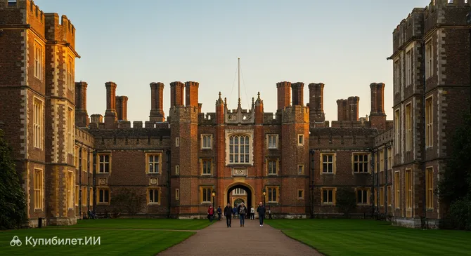 Хэмптон-Корт — это великолепный дворцово-парковый ансамбль на юго-западе Лондона, который является одной из самых знаковых достопримечательностей Великобритании. Уникальность дворца заключается в поразительном сочетании двух архитектурных стилей: суровой кирпичной готики эпохи Тюдоров и элегантного барокко, добавленного позднее по велению короля Вильгельма III. Изначально построенный для кардинала Уолси, дворец был конфискован знаменитым королем Генрихом VIII и на протяжении веков служил резиденцией для английских монархов.