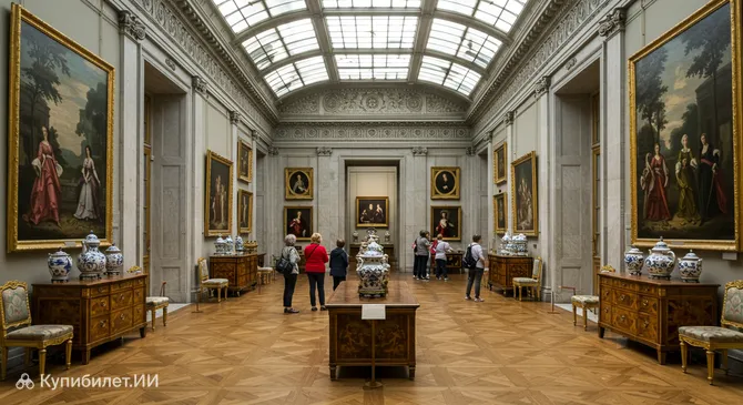 Особую гордость коллекции составляют шедевры французского искусства XVIII века. Посетители могут восхититься полотнами знаменитых художников, утонченной мебелью эпохи Людовика XV и Людовика XVI, а также великолепными изделиями Севрской фарфоровой мануфактуры. Эти предметы декоративно-прикладного искусства отражают роскошь и изящество французского двора и аристократии того времени.