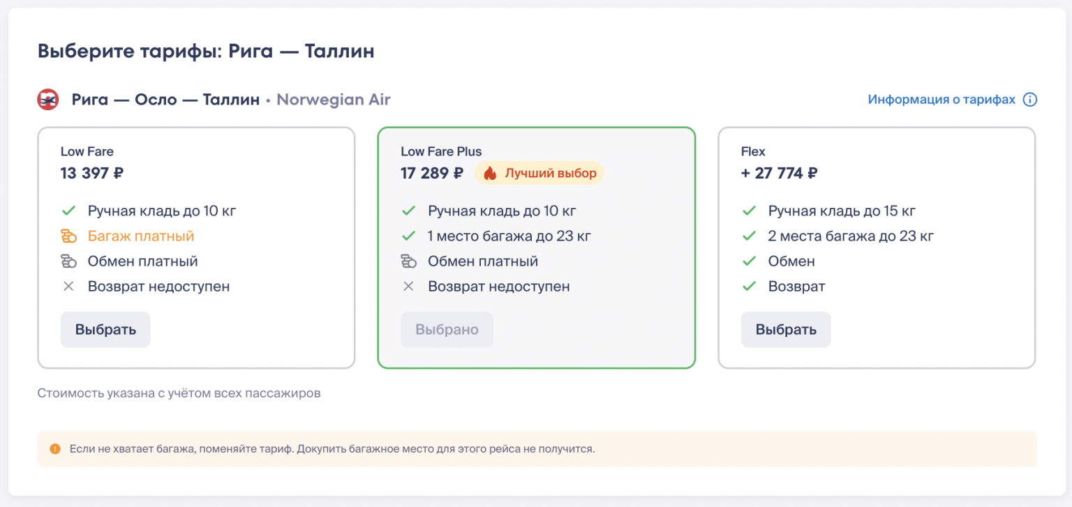 В процессе оформления заказа норма багажа отображена в условиях тарифа. Обратите внимание: для каждого рейса может быть указана разная норма провоза.
