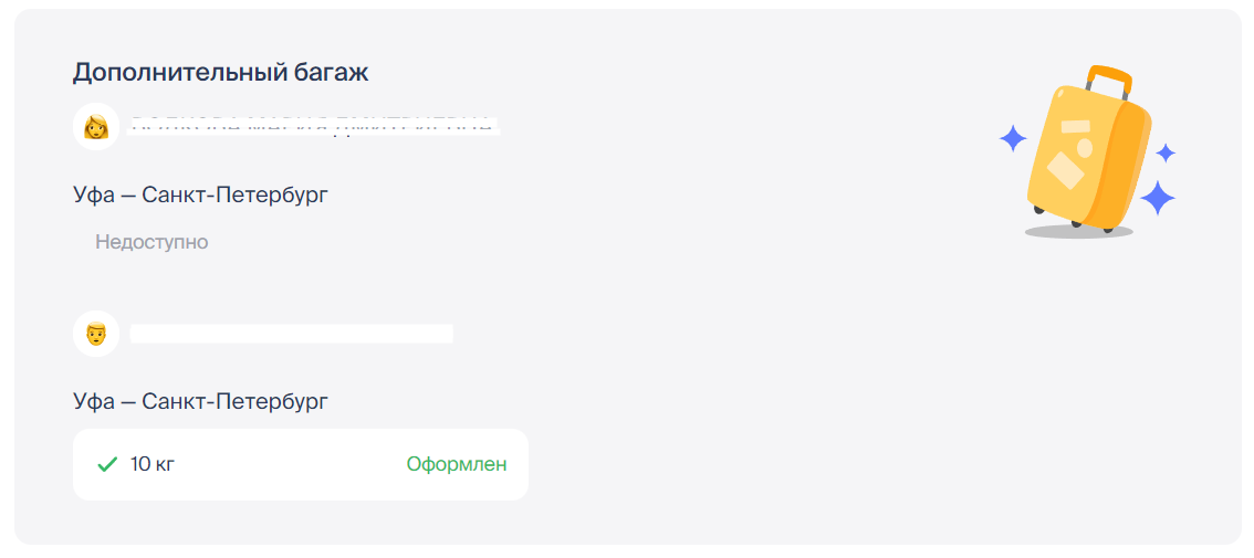 Если вы выбрали и оплатили дополнительный (сверхнормативный) багаж в процессе или после оформления заказа на Купибилете, он будет указан в составе заказа в вашем Личном кабинете.