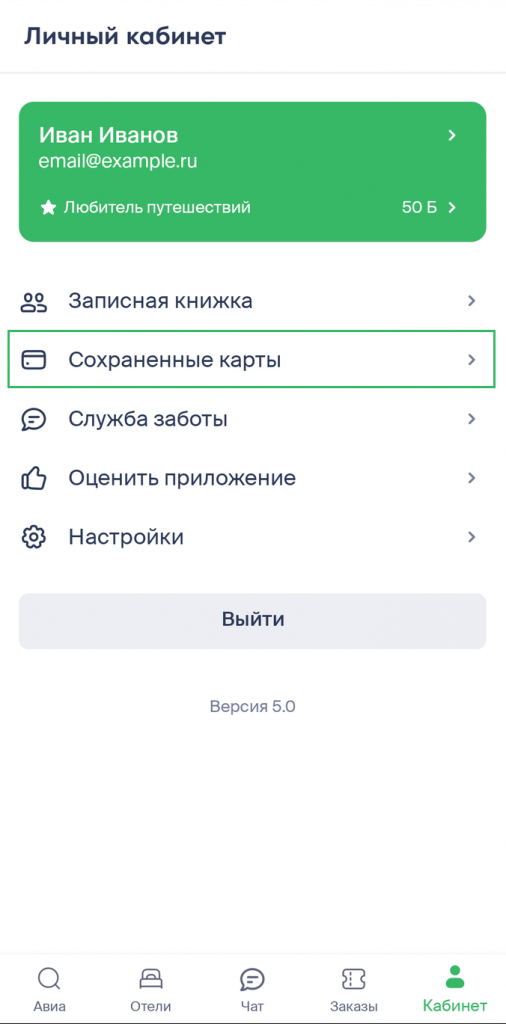 3. После блока Личные данные найдите блок Сохранённые карты.