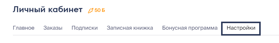 1. Зайдите в Кабинет и нажмите Настройки.
