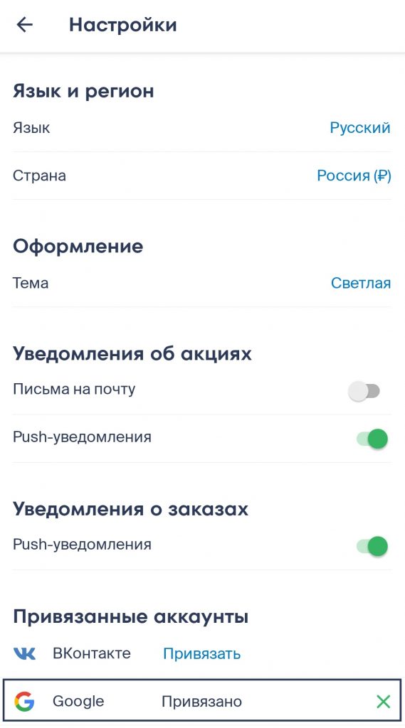 2. Пролистайте до блока Привязанные аккаунты и нажмите на крестик напротив выбранной платформы.
