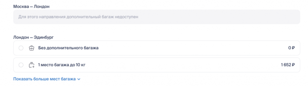 Обратите внимание: вы оформляете дополнительный багаж на каждую отдельную часть маршрута, а не на весь перелёт.